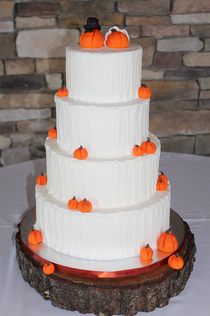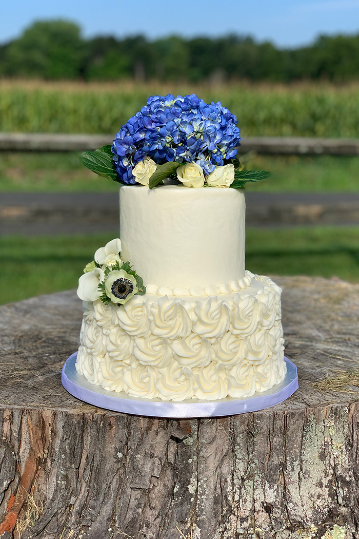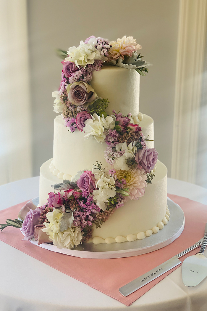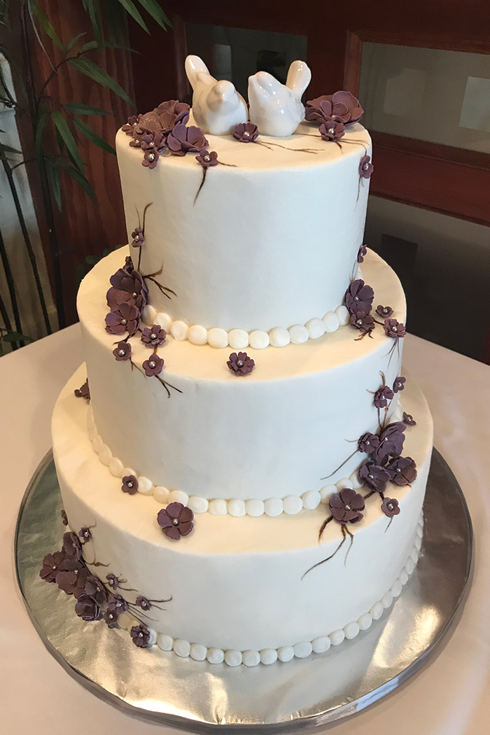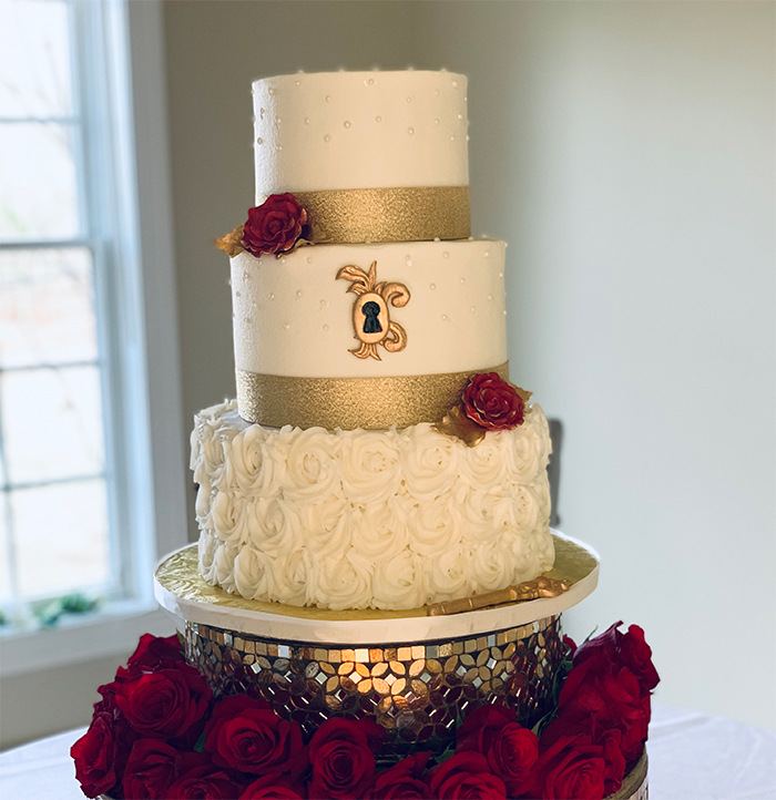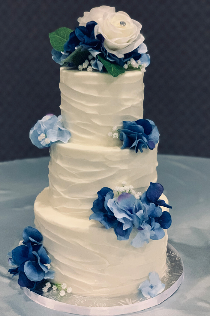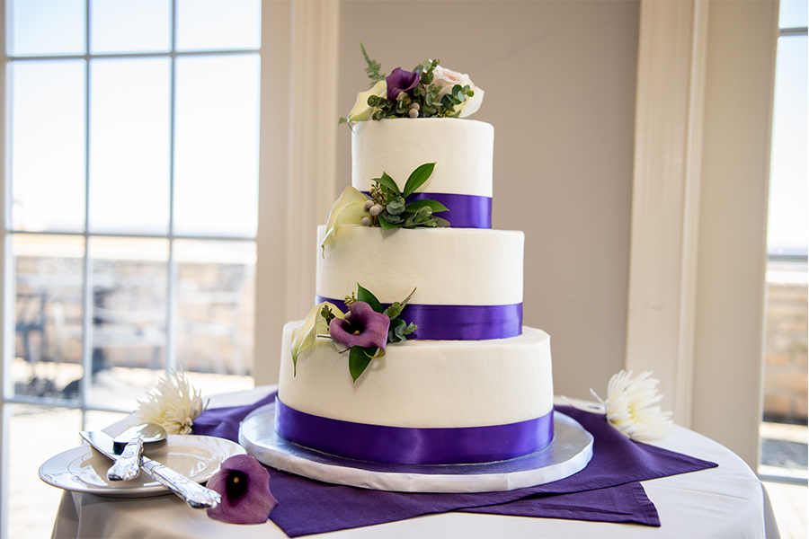 Wedding cake pricing is calculated by the number of servings, design and flavor. All wedding cakes will need a contract to outline the details. A deposit and signed contract are required to hold your wedding date.