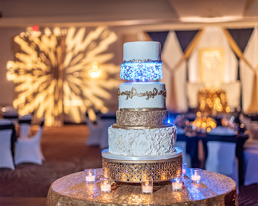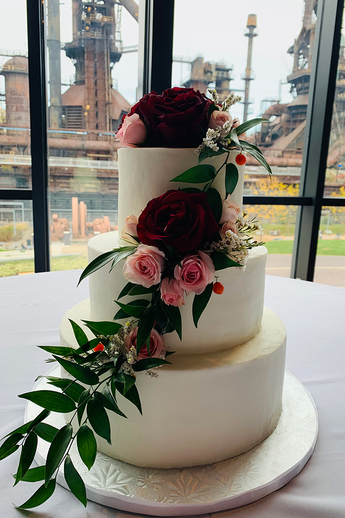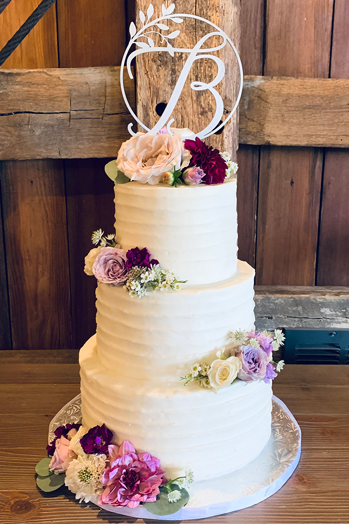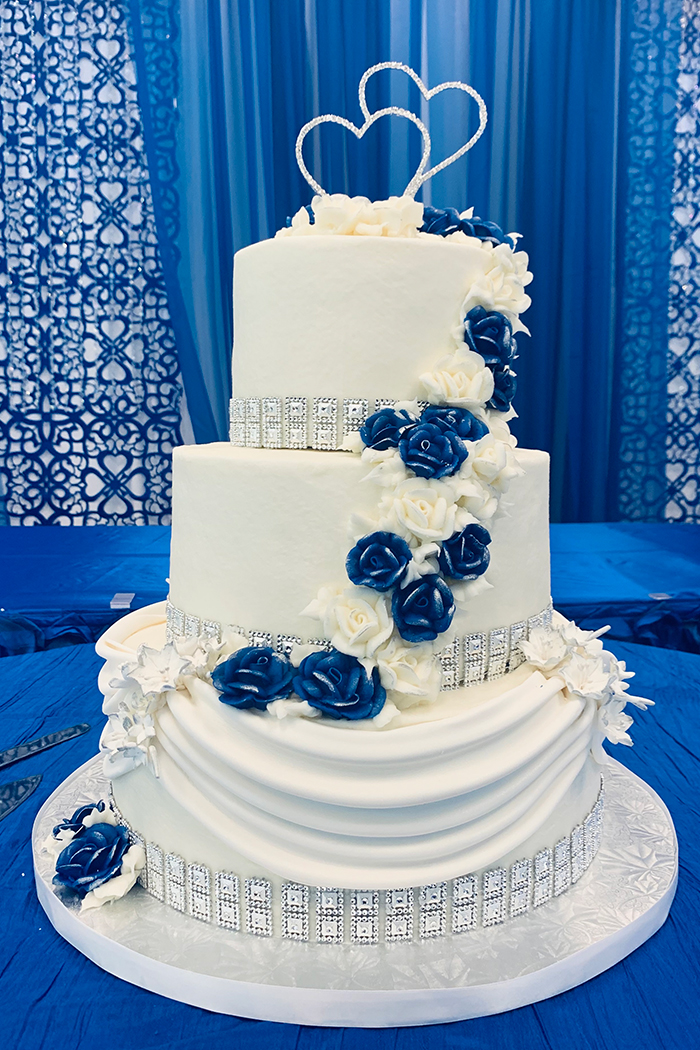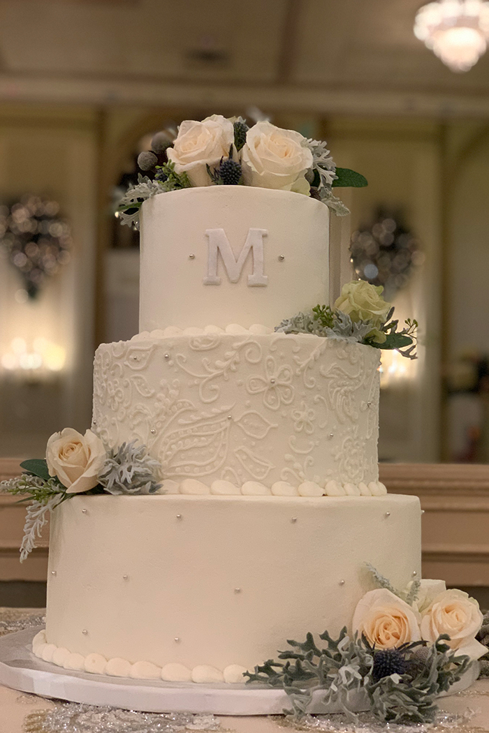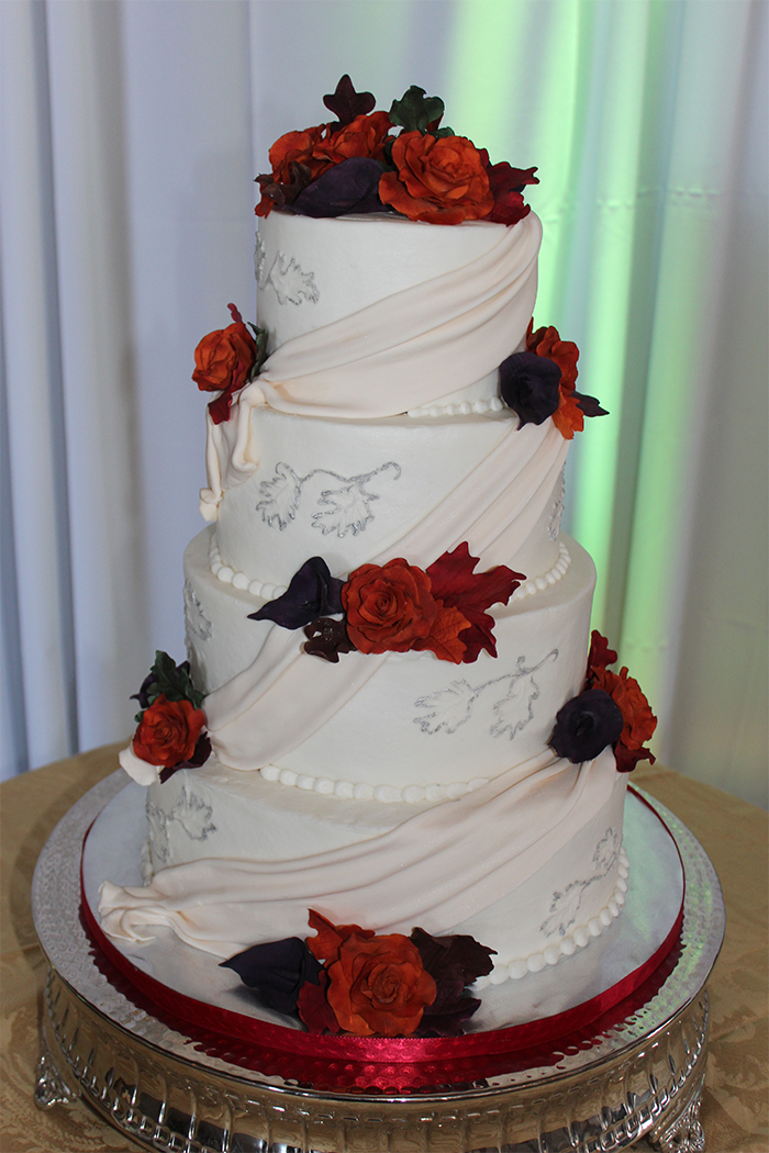 Wedding cake pricing is calculated by the number of servings, design and flavor. All wedding cakes will need a contract to outline the details. A deposit and signed contract are required to hold your wedding date.