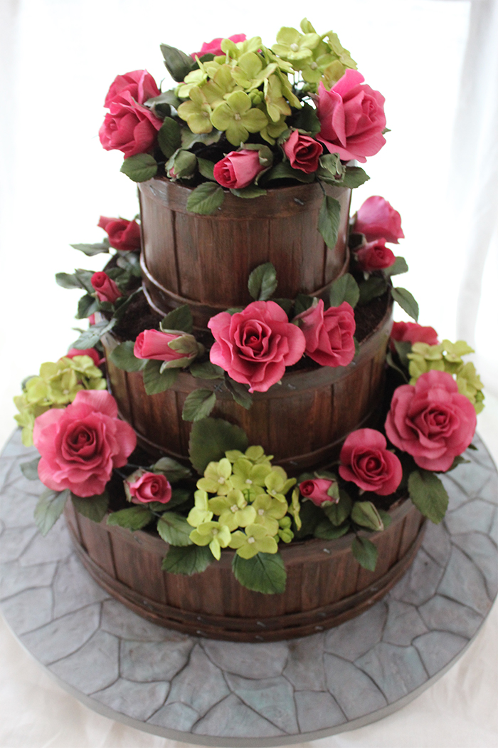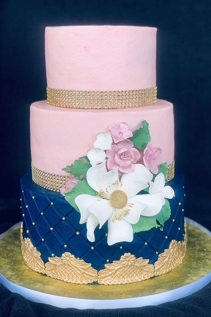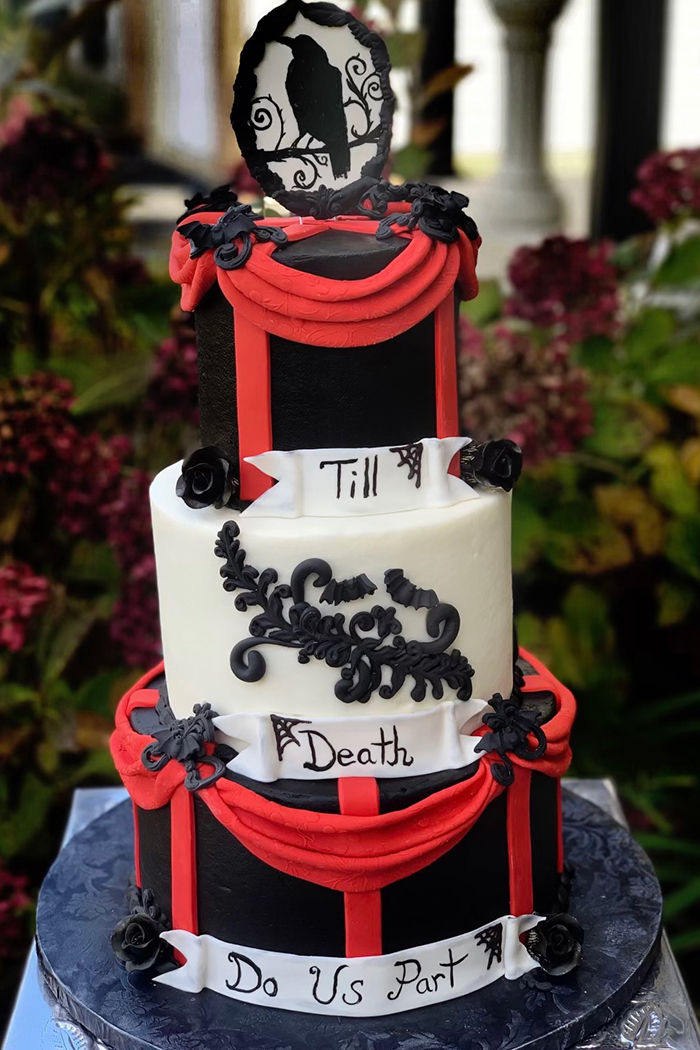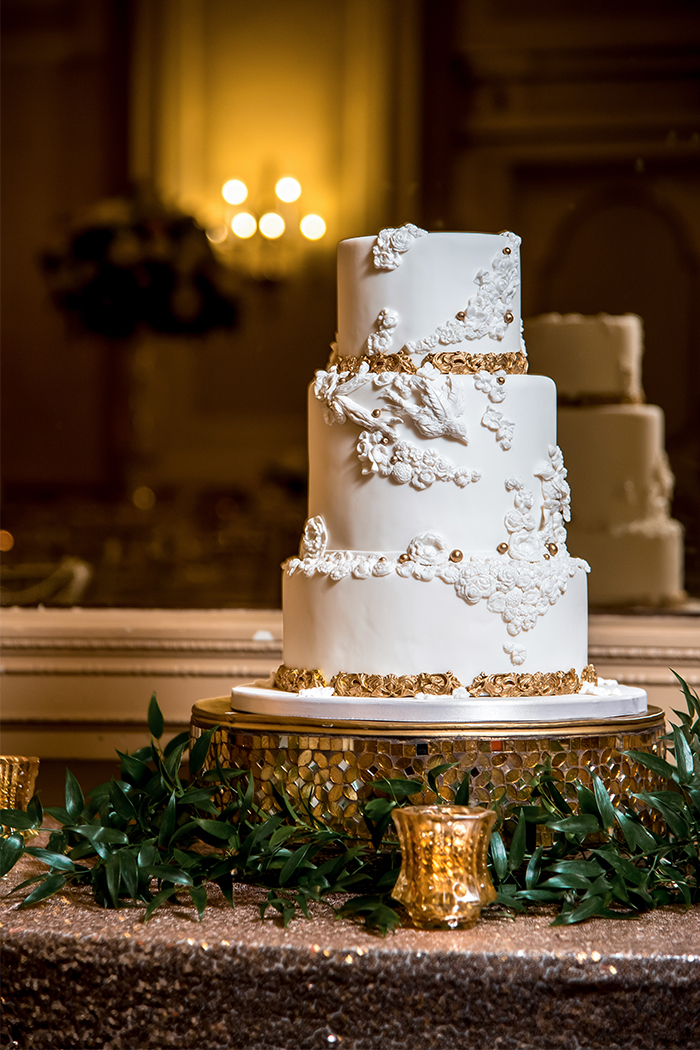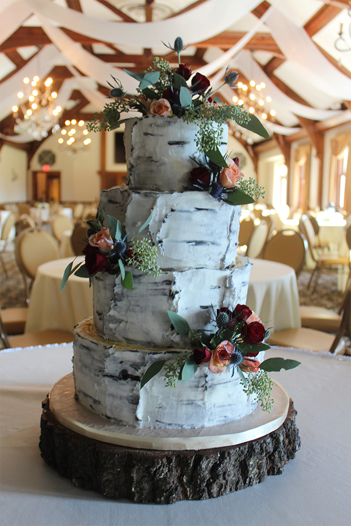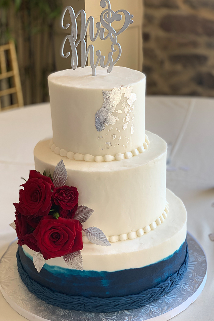 Wedding cake pricing is calculated by the number of servings, design and flavor. All wedding cakes will need a contract to outline the details. A deposit and signed contract are required to hold your wedding date.